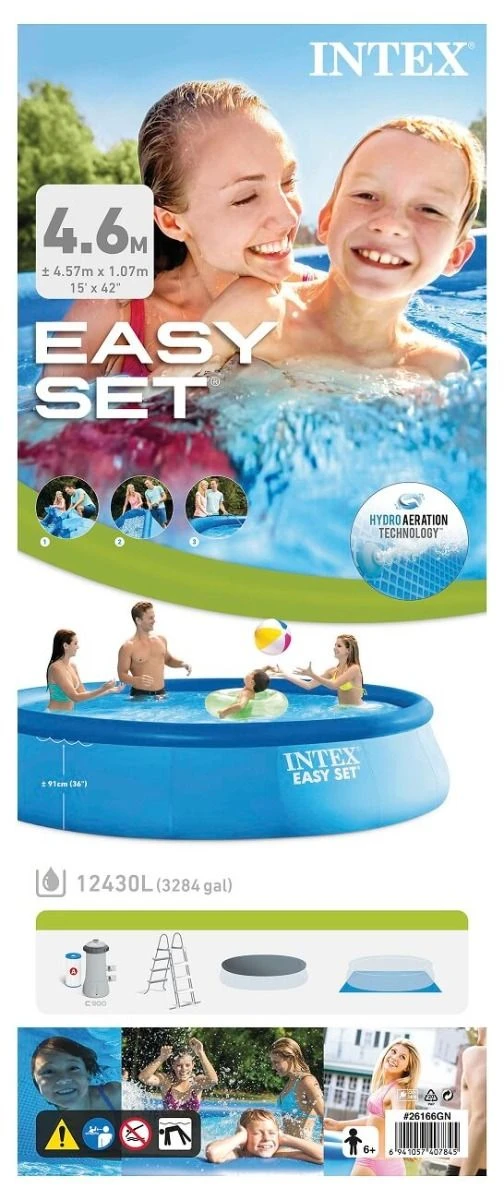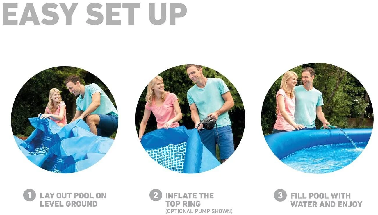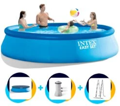 De Intex Easy Set Pool is hét zwembad waardoor al duizenden gezinnen heerlijke warme zomerdagen hebben beleefd in hun achtertuin! Waarom nog de auto pakken voor het zwembad of het strand, als je dezelfde verkoeling en kwaliteit bij je thuis kunt krijgen? Het zwembad is eenvoudig te onderhouden, makkelijk te monteren en leuk om te bezitten. Het zwembad is zo groot dat het hele gezin er gebruik van kan maken. Je kunt heerlijk relaxen op jouw luchtbed, en de kinderen hebben meer dan genoeg ruimte om er in te spelen. Het grote voordeel van dit zwembad is dat het zeer eenvoudig op te zetten is. Binnen maximaal 15 minuten is het gebruiksklaar!
